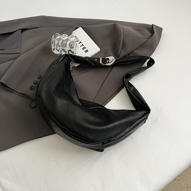 The essence of street-style chic. Our dumpling-shaped shoulder bag features a unique three-dimensional front pocket and clean accent stitching. Its soft, supple form makes it a trendy and comfortable accessory for any urban adventure.