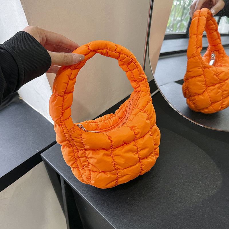 - Urban dumpling silhouette with soft fold structure